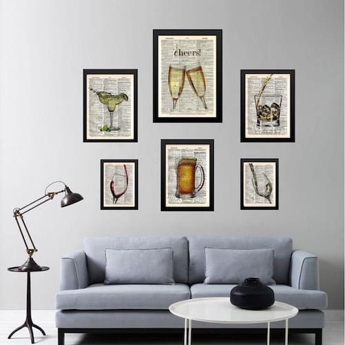 Composição 6 quadros vintage bar - bebidas diversas Moldura: madeira branca Informações do produto tire todas as suas dúvidas no descritivo abaixo: decoração para quarto, sala, cozinha, escritório, área gourmet e muito mais. Chega de paredes vazias medidas - kit composto por 6 quadros, sendo 2 quadros com medida 18x24cm, 3 quadros com 24x33cm e 1 quadro com medida 33x45cm. Material do papel - papel fotográfico brilhante de altíssima resolução acabamento - todos os quadros são acompanhados de uma película de acetato para proteção da imagem. - os quadros são embalados de forma segura com plástico bolha com camada dupla de acordo com o tamanho dos quadros. Garantia - garantia de 3 meses. Meu quadro chegou. Como posso fixá-lo Você precisa apenas de um martelo e um prego, pois os quadros já vão acompanhados de penduradores. Esta é a forma mais indicada. Caso prefira, você pode utilizar uma fita dupla face neste caso, sugerimos de alta qualidade para evitar que descole e seu quadro caia . Como posso limpar meu quadro A limpeza é feita como um móvel comum da sua casa. Apenas um pano seco ou espanador são suficientes para tal