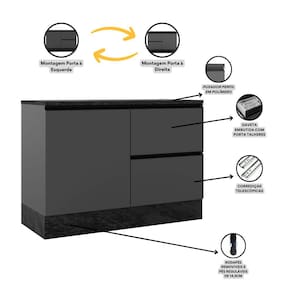 Dimensões do Balcão com Tampo 80 cm 1 Porta 1 Gaveta: Altura: 86 cm Largura: 80 cm Profundidade: 50 cm Peso: 35,5 kg