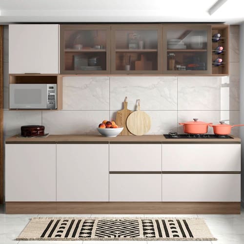 A Cozinha Modulada Etna de 7 peças é a escolha ideal para quem busca praticidade e elegância em um ambiente funcional. Com um design moderno, ela oferece amplos espaços de armazenamento e soluções inteligentes, como nichos para micro-ondas, prateleiras e balcões com tampo resistente a riscos, umidade e altas temperaturas. As gavetas contam com corrediças telescópicas, proporcionando abertura total, e as dobradiças reforçadas com sistema slow motion garantem um fechamento suave. Os módulos possuem pés reguláveis em PVC para nivelamento perfeito e rodapés com presilhas modelo click, que facilitam a remoção. Fabricado em MDP com pintura UV acetinada, o conjunto é durável e de fácil manutenção, além de ser ecologicamente correto. Ideal para compor diferentes ambientes, oferecendo um excelente acabamento e a qualidade que só a Poliman oferece.
