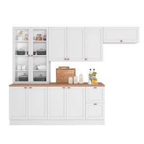 A Cristaleira Unna é um destaque à parte: charmosa e imponente, conta com quatro portas, sendo duas molduradas com vidro transparente, que deixam à mostra seus utensílios ou louças preferidas. Os puxadores em estilo retrô trazem um toque refinado, enquanto os pés reguláveis e rodapés removíveis facilitam o dia a dia, principalmente na hora da limpeza.
