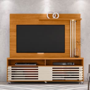 Características: Estrutura em MDP Pintura semi brilho Portas deslizantes frisadas Lumunária de LED Rodízios de Silicone Espaço para TV até 65 Polegadas.