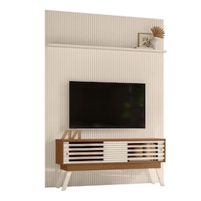 Características: Estrutura em MDP Pintura semi brilho Portas deslizantes frisadas Pés Retrô Painel com detalhes frisados (baixo relevo) Espaço para TV até 65 Polegadas.