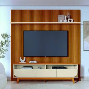 Características: Estrutura em MDP Pintura semi brilho Gavetas com corrediças telescópicas Laterais com detalhe curvo Tampo com borda chanfrada Pés Usinados Espaço para TV até 75 Polegadas.