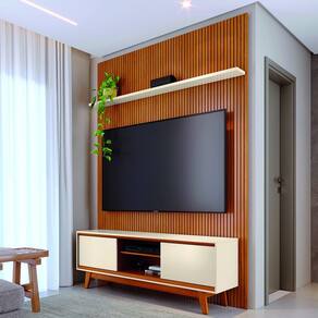Características: Estrutura em MDP Pintura semi brilho Painel em MDF frisado (baixo relevo) Portas Deslizantes Detalhe chanfrado na base e no tampo Pés Usinados Espaço para TV até 65 Polegadas.