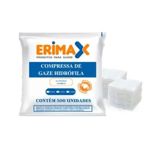 - Compressas de gaze com 13 fios, no tamanho 7,5x7,5cm, embaladas em um pacote com 500 unidades, projetadas para cuidado, absorção e versatilidade em procedimentos médicos.
