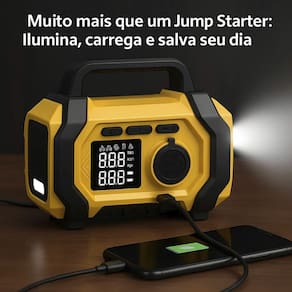 Jump Starter Automotivo: dá partida no veículo quando a bateria descarrega, sem precisar de outro carro.