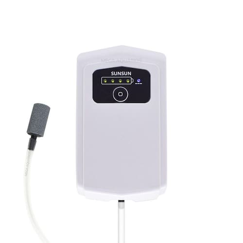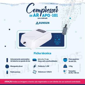 Compressor de ar Sunsun APQ-101 com nobreack a bateria liga automaticamente quando ocorrer quedas de energia - bivolt - acompanha mangueira e pedra porosa