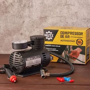 O compressor de ar 12V é um item prático e indispensável para o dia a dia. Leve (400g), compacto e fácil de transportar, é ideal para emergências e viagens. Funciona por meio do plug 12V do veículo, conectado ao acendedor. Conta com manômetro integrado e 3 bicos adaptadores, permitindo inflar diferentes itens com facilidade, onde você estiver.