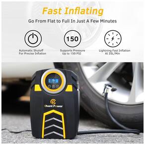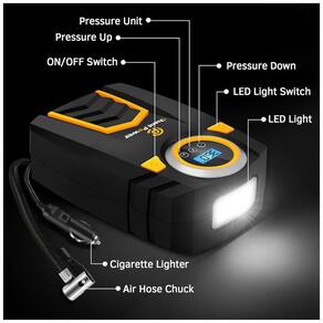 Motor forte e inflação rápida Este compressor de ar portátil para o pneu do seu carro é capaz de fornecer uma pressão máxima de 150 psi e um fluxo de ar de 35L , Min. Você pode encher o pneu de um carro de 0 a 35 psi em apenas quatro minutos. Tela LCD e corte automático A bomba de pneus de 12 V parará na pressão de ar predefinida. Ele também se desligará antes de superaquecer. O display digital pode medir a pressão do pneu em KPA, PSI, BAR, KG , CM e é fácil de ler sob luz fraca. Fonte de alimentação 12V e zenamento conveniente Equipado com plugue de 12V para atender ao seu uso diário e no carro, certifique se de poder usá lo onde quiser. A mangueira de ar pode ser enrolada ao redor da parte inferior da bomba de pneu, não há necessidade de se preocupar com cabos bagunçados durante o uso. Luz LED embutida e bicos adicionais Uma luz LED embutida ajuda quando você precisa usá la à noite. Se você precisar encher um pneu de bicicleta, bola, piscina inflável ou brinquedo de piscina, esta bomba de ar vem com 4 bicos para que você o faça. Portátil e economia de tempo As bombas compressoras são fáceis de transportar e zenar, convenientes para mantê las em seu carro para emergências, economizando sua ida ao posto de gasolina Marca: Não Informado