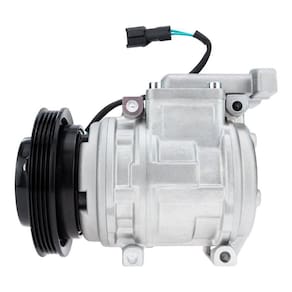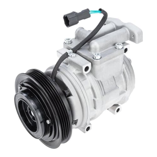 dimensões: : gerais: altura h : 150mm x comprimento l : 203mm x largura b : 150mmpolia: diâmetro : 130mm polia: : 4 canais cilindradas por rotação: : 155 cc/r quantidade de óleo: : 150 ml fixação/conexão: : 4 furos passantes conectores: : 2 tensão: : 24v modelo do compressor : 10pa15 saída: : superior óleo: : pag 46 gás: : r134a código : : 22086013b peso: : líquido: 6,6 kgbruto: 6,8 kg