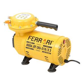 Características do Produto: Modelo: JET CMJ-210 Ferramentas: Compressor de Ar Marca: Ferrari Potência: 1/2 cv - Bivolt 127/220 Volts com chave seletora Rotação do Motor: 1750 rpm Tensão Nominal: 127/220 Volts (Bivolt) Pressão Máxima de Trabalho: 40 Psi (2.8 Bar) Deslocamento Teórico (Vazão) : 90 L/Min - 3,2 Pcm