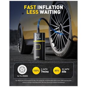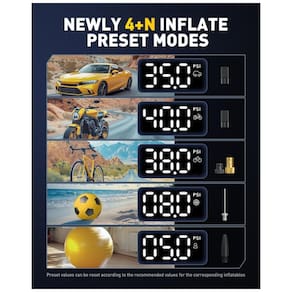 Inflação ultrarrápida em apenas 1 minuto! O Compressor de Ar AUXITO oferece pressão máxima de 150 PSI e um potente fluxo de ar de 26L/min, inflando pneus 3 vezes mais rápido que as bombas padrão. Perfeito para motoristas ocupados, infla pneus de carro compactos de 30 a 35 PSI em apenas 1 minuto, poupando seu tempo e esforço na estrada! Com 4 modos predefinidos inteligentes - Carro, Moto, Bicicleta, Bola - e um modo Personalizado, este inflador lida facilmente com qualquer tarefa de inflação. Seja para encher pneus de carro, pneus de bicicleta, equipamentos esportivos ou até mesmo brinquedos de piscina, o Compressor de Ar AUXITO é sua solução definitiva e completa. Operação sem complicações com desligamento automático! Conecte a mangueira, ajuste a pressão desejada e pressione iniciar. A função inteligente de desligamento automático interrompe a inflação instantaneamente ao atingir a pressão-alvo, sem necessidade de monitoramento constante. Com tela dupla para clareza e precisão! Com um design de tela dupla, este compressor de ar portátil exibe tanto a pressão em tempo real quanto os valores predefinidos com precisão de 1 PSI. As telas maiores e atualizadas são legíveis à luz do sol, garantindo visibilidade clara mesmo em condições externas brilhantes. Uma ferramenta de emergência multifuncional para cada aventura! Mais que um simples inflador de pneus, este dispositivo é um salva-vidas na estrada. Inclui uma lanterna LED super brilhante com 3 modos (LED, SOS, Piscante) para emergências noturnas e uma porta USB 5V2A para carregar seu celular ou outros dispositivos. Compacto, confiável e repleto de recursos, é o companheiro perfeito para viagens e emergências. O presente perfeito para amantes de carros e famílias! Procurando um presente atencioso e prático? O Compressor de Ar AUXITO é indispensável para entusiastas de carros, viajantes e famílias. Dê o presente da segurança, conveniência e tranquilidade!