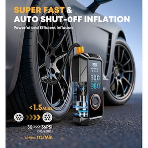 - 👍? & ?Este compressor de ar para carro possui um medidor de pressão digital avançado com uma tela LCD de tela dupla para monitoramento de pressão em tempo real, garantindo precisão precisa. Defina facilmente o PSI desejado usando a função predefinida. O recurso de desligamento automático evita o excesso de inflação, protegendo seus pneus de danos e garantindo desempenho e segurança ideais. Se você estiver inflando pneus de carro, equipamentos esportivos ou bicicletas, esta bomba sempre proporciona inflação precisa e sem complicações