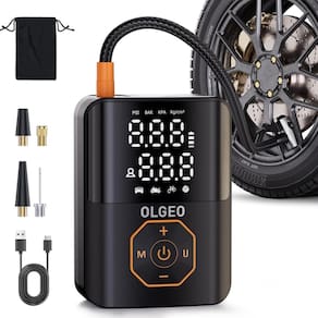 inflador de pneu compressor de ar portátil compressor de ar inflador de pneu bomba de ar portátil para carro bomba portátil para carro bomba de pneu inflador de carro inflador de pneu rápido inflador de carro bomba de pneu portátil compressor de ar inflador de pneu portátil melhor inflador de pneu inflador de pneu compressor de ar portátil - ?Design mais sofisticado e trabalho inteligente?O mais recente design de engenheiros americanos seniores em 2024, o compressor de ar portátil do inflador de pneus da OLGEO está equipado com um motor de alta eficiência e uma aparência elegante, liderando a tendência do mercado de inflador de pneus! Este inflador de pneu pode aumentar a velocidade de enchimento para 36L/Min, então leva menos de 5 minutos para inflar um pneu de carro 195/65/R15 de 0 psi a 35 psi. - ?Compressor de ar mais ergonômico e potente?Nosso compressor de ar portátil para inflador de pneus adota um design de estilo digital simplificado, que se adapta às mãos das pessoas, e seu tamanho e peso são extremamente comprimidos (como uma lata de refrigerante). Este compressor de ar portátil pode ser utilizado continuamente por 1 hora e totalmente carregado em 3 a 4 horas. Será o seu melhor parceiro de estrada! - ? 5 modos de inflação claros e simples?Nossa bomba de ar para carro tem 5 modos predefinidos, adequada para bicicletas, motocicletas, carros e bolas. Ele desligará automaticamente quando o valor predefinido for atingido. Você também pode definir o valor de pressão para 160PSI para atender às necessidades de mais produtos infláveis. Finalmente, você pode alternar facilmente entre unidades de pressão PSI, KPa, BAR e KG/CM² com apenas um botão. - ?Tela LCD HD e detecção de pressão?Este inflador de pneu está equipado com uma tela LCD de 3,4 polegadas fácil de ler que pode exibir valores mais detalhados. Além disso, esta bomba de ar para carro também está equipada com uma função de medidor de pressão, permitindo que você monitore facilmente o valor da pressão do pneu. - ?Inflador portátil e lanterna de emergência?Não é apenas um inflador de pneu de carro, mas também uma lanterna de emergência ao ar livre. Pode desempenhar um grande papel em situações de emergência à noite: inflar pneus, trocar pneus, chamar a polícia, pedir ajuda e perder energia! - ?Serviço pós-venda profissional e acessórios ricos?Este inflador de pneus portátil é embalado em uma caixa de presente requintada (muito adequada como presente) e vem com uma bolsa de transporte e vários adaptadores.
