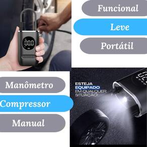 Tenha sempre à mão o compressor de ar portátil digital, indispensável para inflar pneus de carros, motos, bicicletas, e até bolas. Compacto e potente, com função recarregável e lanterna integrada para emergências.