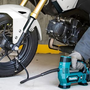 Compressor Portátil a Bateria 12 Volts - MP100DZ - MAKITA Características: - Projetada com a tecnologia CXT. - Ideal para encher pneus de carros, motos e bicletas. - Regulador de pressão digital em kPa, PSI ou BAR. - Iluminação de trabalho. Especificações: - Pressão de ar máxima: 830 kPa (121 PSI) - Comprimento da Mangueira: 65cm - Dimensões (C x L x A): 235 x 74 x 174mm - Peso: 1.2kg - Bateria: 12V Itens que acompanham: - Não acompanham bateria e carregador, este produto é recomendado para quem tem ferramenta a bateria da linha 12V CXT * Imagens meramente ilustrativas.