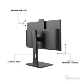 Ergonomia Ajuste a tela da melhor forma para o seu uso. Através das opções de ergonomia, você pode girar a tela em até 90 graus na vertical, e também ajustar a altura e a inclinação para que você se sinta o mais confortável possível no seu dia a dia.