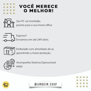 Computador Completo Intel Core i5 4 8GB HD500GB Monitor19 Computador O9U seja para grandes ou pequenas empresas, profissionais em home Office ou alunos, nossa linha Home é completamente pensada para atender às necessidades de profissionais e alunos que buscam eficiência e bom desempenho na execução de seus trabalhos e atividades. Com componentes selecionados para uma melhor performance, nossos computadores irão tornar a sua rotina muito mais eficiente Esse computador vem equipado com o Processador Intel Core i5- 4570 4º Geração, H81 Socket 1150, 8GB de Memória RAM DDR3, Placa de Vídeo Onboard Intel Graphics, HD 500GB, Fonte de 200W e Sistema Operacional Windows 10. Esse PC se destaca no mercado pelo seu custo benefício, sua performance e rapidez durante o uso, mais 6 meses de . Além disso, os computadores são entregues prontos para uso, é só ligar e se surpreender. Especificações técnicas: Processador: Intel Core i5- 4570 4 Geração 3.20ghz - 4 núcleos. Memória RAM de 8GB DDR3 HD 500GB Placa mãe H81, com Socket 1150. LAN 100/1000 Mbps. Suporte para processadores de 4 geração de processadores Intel Core i3/ i5/i7 e com expansão de até 8GB de memória Ram. Placa de Vídeo Onboard Intel Graphics Fonte: 200W Voltagem 110/220V Sistema Operacional Windows 10 Especificações técnica Monitor: Monitor LED Full HD de 19 polegadas - REFORMADO Resolução de 1600x900 pixel com 60Ghz e tempo de resposta de 5ms Interface de vídeo VGA Bivolt Automático Está incluso neste anúncio: 1 CPU com as descrições acima. 1 Monitor de 19 polegadas - REFORMADO 1 Mouse com fio 1 Teclado com fio padrão ABNT2 2 Cabos de Alimentação
