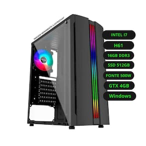 Computador CPU Gamer Intel Core i7 H61 16GB DDR3 SSD 512GB Placa de Vídeo GTX 4GB Fonte 500W WiFi Windows