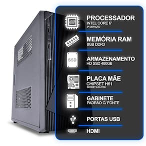 Obs: Imagem ilustrativa do produto, o modelo do gabinete a ser enviado dependerá da disponibilidade no momento da montagem do computador, sempre respeitando o padrão de cor preto e boa qualidade do produto. Não acompanha monitor, teclado, mouse ou caixas de som. Não acompanha gravador de dvd. Ean: 7792884460058