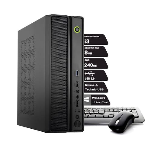 Inclui: - Teclado e Mouse USB: Perfeitos para completar sua estação de trabalho. - Sistema Operacional Windows 10 Pro Trial: Estável e seguro para todas as suas atividades.