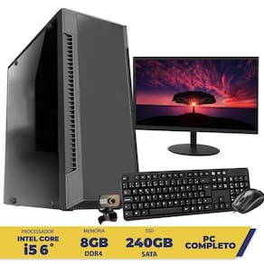 Computador pc completo intel i5 6º geração memória 8gb ssd240gb O computador o1783 seja para grandes ou pequenas empresas, profissionais em home office ou alunos, nossa linha home é completamente pensada para atender às necessidades de profissionais e alunos que buscam eficiência e bom desempenho na execução de seus trabalhos e atividades. Com componentes selecionados para uma melhor performance, nossos computadores irão tornar a sua rotina muito mais eficiente Esse computador vem equipado com o processador intel core i5-6400t de 6 geração, placa mãe h110, 8gb de memória ram ddr4 1x8gb , ssd de 240gb sata e sistema operacional windows 10. Esse pc se destaca no mercado pelo seu custo benefício, possibilidade de navegar com até 2 monitores simultâneos, mais 6 meses de garantia e sua tecnologia ssd permitindo que o computador inicie ou desligue em segundos quando um comum leva de 1 a 2 minutos, garantindo performance e rapidez durante o uso. Além disso, os computadores são entregues prontos para uso, é só ligar e se surpreender. Especificações técnicas:Processador intel core i5-6400t 2.20ghz de 6º geração com 4 núcleosMemória ram de 8gb ddr4Ssd sata de 240gbFonte nominal de 300w bivoltPlaca mãe h110 - socket 1151. Suporte para processadores de 6º e 7º geração dos processadores intel core i3/ i5 / i7. Expansão de até 16gb de memória.Placa de vídeo integrada: gráficos hd intel 530Placa de rede integrada: 10/100Interface de vídeo: vga e hdmi Especificações do monitor:Tela led com formato widescreen de 19 polegadasResolução hd de 1600x900Com interface de vídeo vga e hdmiBivolt automático Está incluso neste anúncio:Uma cpu com os componentes indicados;Um monitor de 19 polegadas;Um teclado de conexão usb, teclas macias e padrão abnt com çUm mouse de conexão usb, 1000dpi e 3 botõesUma caixa de som de conexão usb e p2Dois cabos de alimentação para ligar a cpu e o monitorUm adaptador usb para conexão wi-fi Garantia de 06 meses - o termo de garantia será enviado junto ao produto. Homologação Anatel: 025931304858