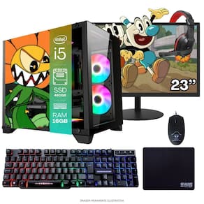 1 Computador Gamer Completo TOB Intel Core i5 SSD 480GB 16GB Gabinete Aquário Teclado Mouse Mouse Pad e Headset Gamer Monitor 23” Windows 10 Pro Trial