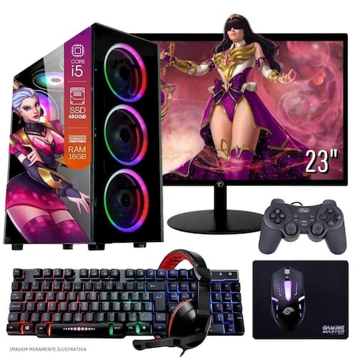1 Computador Gamer Completo TOB Intel Core i5 SSD 480GB 16GB Teclado Mouse Mouse Pad e Headset Gamer Joystick Monitor 23” Windows 10 Pro Trial
