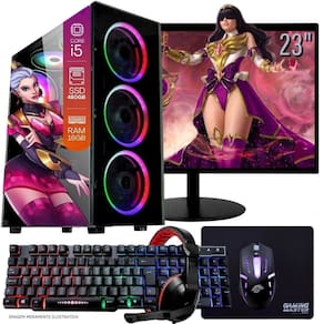 1 Computador Gamer Completo TOB Intel Core i5 SSD 480GB 16GB Teclado Mouse Mouse Pad e Headset Gamer Monitor 23” Windows 10 Pro Trial
