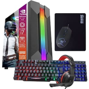 Com o Computador Gamer Intel Core i7 8GB de Memória SSD 480GB Placa de Vídeo Geforce 4GB Teclado Mouse Pad e Headset Gamer gabinete gamer RGB com Windows e diversos jogos instalados, você terá alto desempenho e designer Gamer moderno.