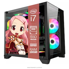 1 Computador Gamer Completo TOB Intel Core i7 SSD 480GB 16GB Gabinete Aquário Teclado Mouse Mouse Pad e Headset Gamer Monitor 23" Windows 10 Pro Trial