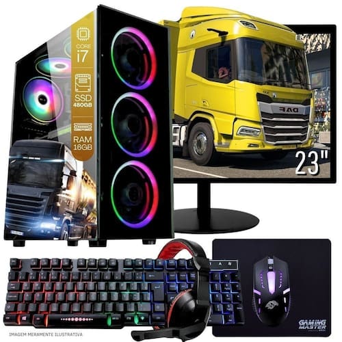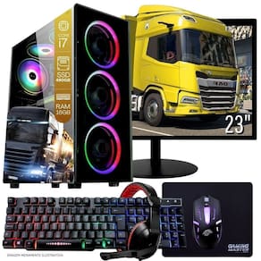 1 Computador Gamer Completo TOB Intel Core i7 SSD 480GB 16GB Teclado Mouse Mouse Pad e Headset Gamer Monitor 23” Windows 10 Pro Trial
