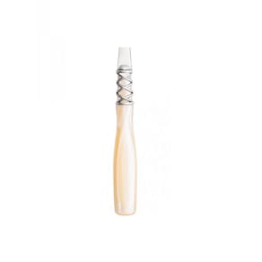 A concha da Linha Arianna da Bugatti é composto por um anel cromado trançado inspirado no famoso fio de Ariadne que lhe dá o nome, e um elegante cabo de madrepérola em acrílico colorido.
