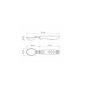 INFORMAÇÕES GERAIS Concha para sorvete de aço inox que proporcionam resistência durante o uso.Cabo de polipropileno que oferece segurança e resistência durante o manuseio.Pode ir à máquina de lavar louças facilitando seu dia a dia.