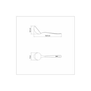Totalmente feita de aço inox, por isso não solta nenhum resíduo nos alimentos, mantendo-os saudáveis. Altamente durável, mantém suas características , preservando a beleza, a higiene e a durabilidade do material. Possui furo no cabo, o que permite incluí-la na decoração da cozinha. Pode ser lavada diariamente na máquina de lavar louças. Ean: 7891116116906