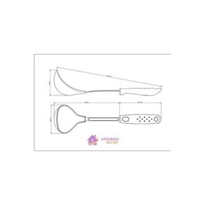 Concha de Nylon que permite uso em temperaturas de até 200 C e haste de aço inox. O cabo de polipropileno possui furo passante possibilitando que seja pendurado na sua cozinha. Utensílio ideal para uso em panelas com revestimentos antiaderentes e cerâmicos, pois não danifica o produto. Pode ir à máquina de lavar louças facilitando seu dia a dia.