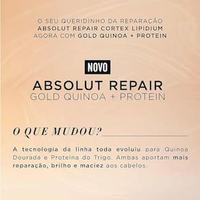 Produto: Condicionador indicado para cabelos danificados. Infundido com Gold Quinoa+ Proteína , a fórmula do condicionador é o tratamento perfeito para reestruturar imediatamente os cabelos danificados. Sua fórmula nutre a fibra capilar, deixando-a com o toque leve e suave. Quinoa+proteína: em sua composição, além de vitaminas E e do complexo B, conta com a proteina completa, que auxilia na profunda reestruturação da fibra que sofreu danos enquanto criam um filme que confere força e proteção aos fios, prevenindo de danos futuros. Proteína Hidrolisada do trigo: Sua função é ajudar a controlar a perda de hidratação dos fios, coferindo alta maciez, toque sedoso,além de criar um filme protetor que mantem as cultículas seladas, retendo assim as proprieades restauradoras dentro da fibra capilar. Co-emulsão: uma nova geração de moléculas,50x menores que as tradicionais. Os ativos penetram mais fundo na fibra atuando especialmente nas áreas mais danificadas. O resultado é um filme fino e Homogênio em toda a fibra capilar, que deixa os cabelos com o toque leve e suave. Modo de usar Aplicar no cabelo molhado. Emulsionar. Enxaguar. Marca: Não Informado Ean: 7899671100323