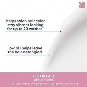 - Uso sugerido: aplique nos cabelos molhados e deixe em 1-3 minutos. Enxágue bem. Recomendamos que você combine o condicionador Color Last com o shampoo Color Last para ajudar a manter seus cabelos tingidos.