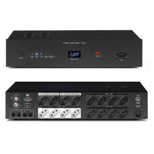 Os condicionadores apresentam dois bancos de tomadas PURE AC 220V, sendo quatro especialmente projetadas para produtos digitais e quatro para produtos analógicos. Ambos também possuem mais quatro tomadas traseiras 220V: duas em alta corrente e duas que funcionam o tempo todo. Completam o painel quatro tomadas 110V, que tornam os dois produtos da AAT ainda mais versáteis e entregam até 500W (PWC-3) ou 1.000W (PWC-4). A parte frontal também revela uma tomada que funciona o tempo todo para comodidade de uso.