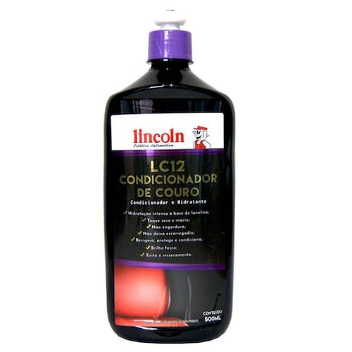 DETALHES DO condicionador hidratante de couro lc12- 500ml lincoln: LC12 condicionador de couro de alta qualidade que hidrata, condiciona e amacia a superfície de ressecamentos e rachaduras prolongando a vida do couro por mais tempo. Desenvolvida a base de lanolina, com altíssimas propriedades hidratantes. Proporciona toque seco e macio, não engordura o couro, com nível de brilho fosco.