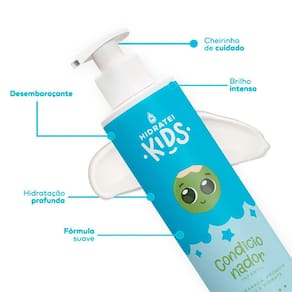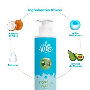 Condicionador Infantil Hidratei Kids O Condicionador Hidratei Kids foi desenvolvido especialmente para facilitar o desembaraço, promover brilho e hidratação de forma segura. Ele contém óleo de coco e Marca: Não Informado