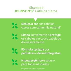 O que é e para que serve? Você sabia que o cabelo dos bebês é 5x mais fino que o cabelo dos adultos? Com fórmula suave para dar o cuidado que o cabelo do seu bebê precisa, o Shampoo Para Bebê JOHNSONS BABY para Cabelos Claros, 200mL limpa suavemente e protege* os cabelos e o couro cabeludo do bebê desde o primeiro dia de vida, além de contar com camomila natural*, que realça a cor dos cabelos claros. Testado por Pediatras e Dermatologistas. Frasco com 20% de plástico reciclado, cuidando do seu bebê e do futuro do nosso planeta! *do ressecamento **Fragrância com extrato de camomila