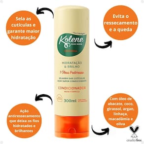 O Condicionador oferece hidratação profunda aos fios ressecados, selando as cutículas e proporcionando mais brilho. Sua fórmula, enriquecida com 7 óleos poderosos (abacate, coco, girassol, argan, linhaça, macadâmia e oliva), ajuda a evitar o ressecamento, a quebra e a queda dos cabelos, deixando-os macios e hidratados.