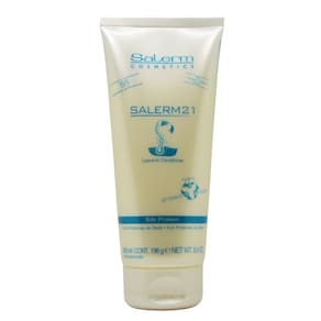 O que é: Salerm21 é uma fórmula inovadora que hidrata, protege e atua como condicionador, com efeito 2+1 (salerm 21), dependendo do método de aplicação. Seu desenvolvimento científico baseado em proteínas da seda e provitamina B5, confere brilho e vida aos cabelos. O que faz: Protege contra: luz solar, calor, cloro da piscina e água do mar. O que mais você precisa saber: Recomendado para: Cabelos danificados, tratados, porosos ou desidratados. Ingredientes principais: Proteínas da seda e provitamina B5 A solução para cabelos secos e danificados A provitamina B5 multiplica os efeitos em dez vezes. O Salerm 21 é mais do que apenas uma máscara condicionadora ou condicionador leave-in. Sua fórmula à base de proteínas da seda atinge o âmago do cabelo, cuidando e revitalizando o cabelo desde o primeiro uso. Salerm 21 melhora o brilho e dá vida aos cabelos danificados. Também protege do sol, do cloro, da água salgada e do calor. Mostre cabelos hidratados com brilho incrível graças à ação do Salerm 21. COMO USAR Hidratante: após a lavagem, aplique uma quantidade do tamanho de uma avelã de Salerm 21 e espalhe sobre o cabelo. Certifique-se de tomar cuidado especial para cobrir as extremidades e as áreas danificadas. Leave-in. Estilize como sempre. Máscara: para cabelos muito danificados, aplique de 0,17 a 0,34 onças e deixe agir por 5 minutos. Enxágue e depois estilize. Protetor: para evitar quebras devido ao emaranhamento. Aplique uma quantidade do tamanho de uma avelã de Salerm 21 no cabelo seco e escove.