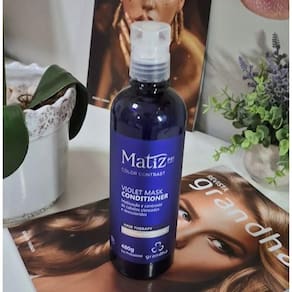Condicionador Matiz P21 Violet Mask Conditioner 480g NOVA FÓRMULA Tratamento capilar de ação matizadora de cabelos loiros, descoloridos e super clareados. Formulação suave e especial com óleo essencial de lavanda e extrato da flor violeta para maior efeito de neutralização de tons indesejados. Uma composição inteligente que associa reflexos em tons de violeta e cinza para contraposição de reflexos quentes. Emulsão de alto desempenho para o melhoramento da textura e do brilho. MODO DE USO Aplique o Violet Mask Conditioner nos cabelos úmidos e massageie intensamente até promover o total desembaraço dos cabelos. Deixe agir por 8 minutos e enxágue abundantemente. INFORMAÇÕES IMPORTANTES Não testado em animais. Dermatologicamente testado. Matização e contraste de cabelos clareados e descoloridos. Marca: Não Informado