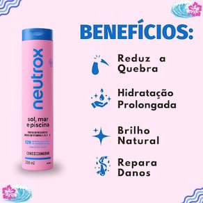 Condicionador Neutrox Sol, Mar e Piscina 300ml O Condicionador Neutrox Sol, Mar e Piscina 300ml é a solução ideal para quem busca proteger e restaurar a vitalidade dos cabelos expostos às agressões do dia a dia, como sol, mar e piscina. Desenvolvido pela Neutrox, este condicionador sela as cutículas dos fios, devolvendo o brilho e a maciez perdidos. Sua fórmula exclusiva, rica em extratos de frutas refrescantes e cenoura, oferece uma proteção completa, garantindo cabelos saudáveis e radiantes.