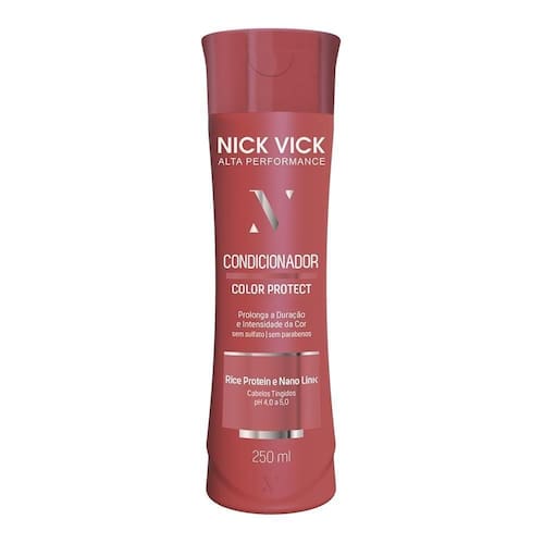 O Condicionador Color Protect da Nick Vick da linha Alta Performance restaura e protege a cor dos cabelos coloridos e mechados de todas as cores, sem depositar pigmento.