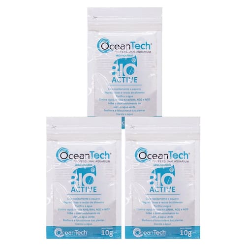 Oceantech Bio Active condicionador multifunção, acelerador biológico, cicla rapidamente o aquário, degrada fezes e restos de alimentos, clareia a água e muito mais