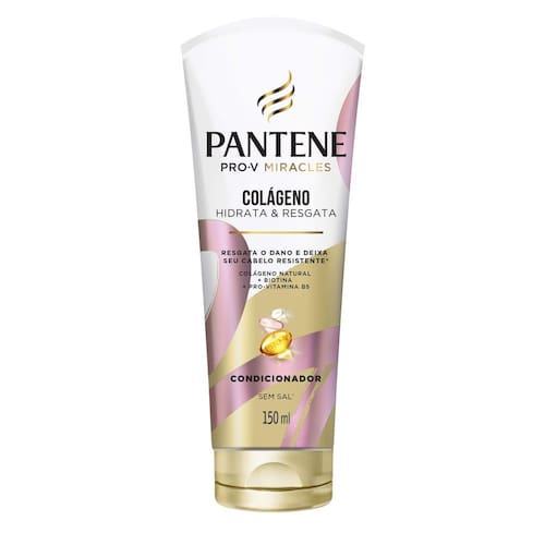 Condicionador Pantene Colágeno Hidrata e Regasta 150ml O condicionador sem sal' Pantene Pro-v Miracles Colágeno Hidrata & Resgata, resgata profundamente o cabelo, reduz as pontas duplas, fecha as cutí