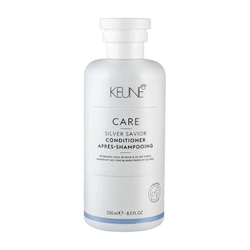 Condicionador Silver Savior Keune Care 250ml Matizador n Care Silver Savior ConditionerSilver Savior Conditioner complementa a linha Silver Savior, neutralizando os tons amarelados indesejados e os desbotamentos dos loiros, com ou sem mechas, deixando seu cabelo lindo o tempo todo. Além disso, também condiciona com perfeição os cabelos grisalhos.Como usar: Depois de lavar o cabelo com shampoo, espalhe o condicionador nos fios úmidos. Deixe agir de um a três minutos e enxágue completamente.Resultado: Cabelo desembaraçado, livre do amarelado e com toque sedoso. n